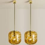 Pair of Amber Murano Glass Pendant Lamps, 1960s