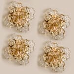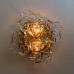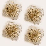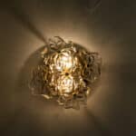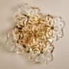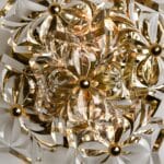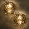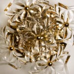 This pair of  sculptural flush mounts have the design of a bouquet of textured glass flowers and are from the historical lighting company Hillebrand from Germany, manufactured Mid-century, circa 1970 (late 1960s or early 1970s).