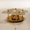 Each clear glass flower shade has textured petals and is securely screwed in place to the frame with a gilt plated plate.