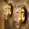 The crystal flowers, all original and in excellent condition, screw securely to the frame. The wall scones can be disassembled and the crystals individually wrapped for easy transport.