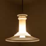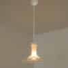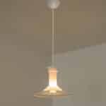 The glass shade of the lamp allows light to pass through in a special way. This gives the hanging lamp a unique look that you don’t see often anymore. Despite its age, the lamp is still in beautiful condition. Each light requires 1 E14 Light bulb. Photographed with clear and amber color light bulbs. Also beautiful with silver or gold light bulbs. Height is adjustable and multiple ceiling cup options are available.