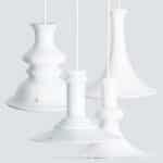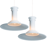 This pair of beautiful glass lamps from the Danish brand Holmegaard has a beautiful white color. The design is by Michael Bang, a designer whose work is highly sought after by collectors of the brand today. Model Etude, an acceptional form! A statement piece in any room.