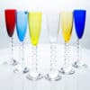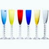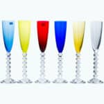 Luxury at its finest, set of 18 high-end glasses in multi-colored crystal by Baccarat. The pure and clean bowl contrast with an angular and tactile stem. The result of this union is a beautiful glass that is as nice to hold as it is to drink.