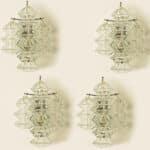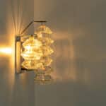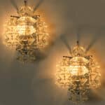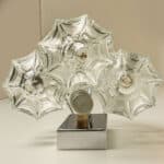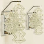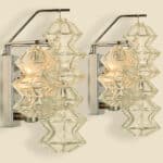 Mid Century Modern vintage glass chrome Pagoda sconces by Kalmar, circa 1969, Austria Vienna.