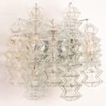 Mid Century Modern vintage glass chrome Pagoda sconces by Kalmar, circa 1969, Austria Vienna.