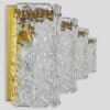 The glass of the light fixtures are made of clear textured glass giving the piece a playful appearance which refracts the light, filling a room with a soft, warm glow.